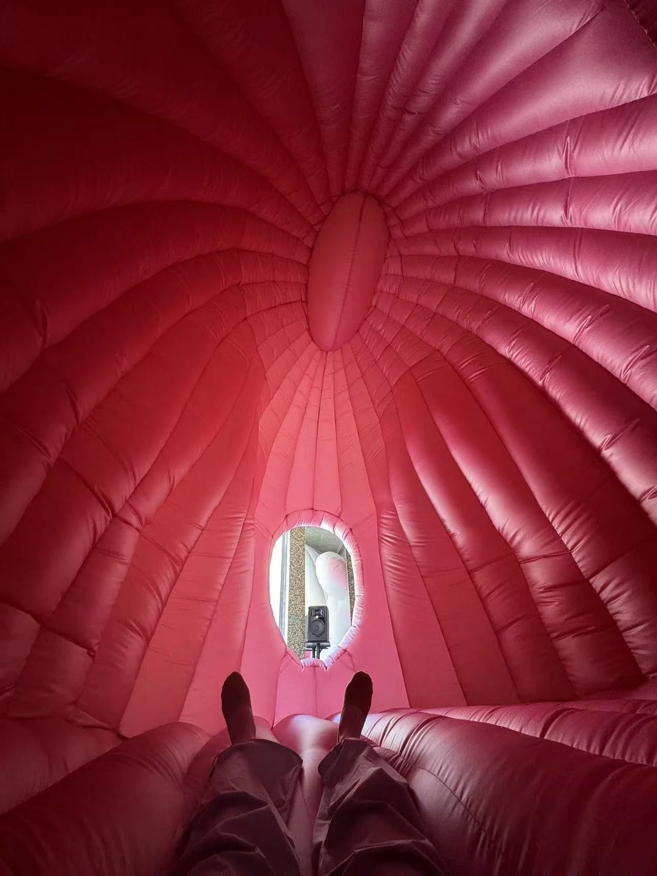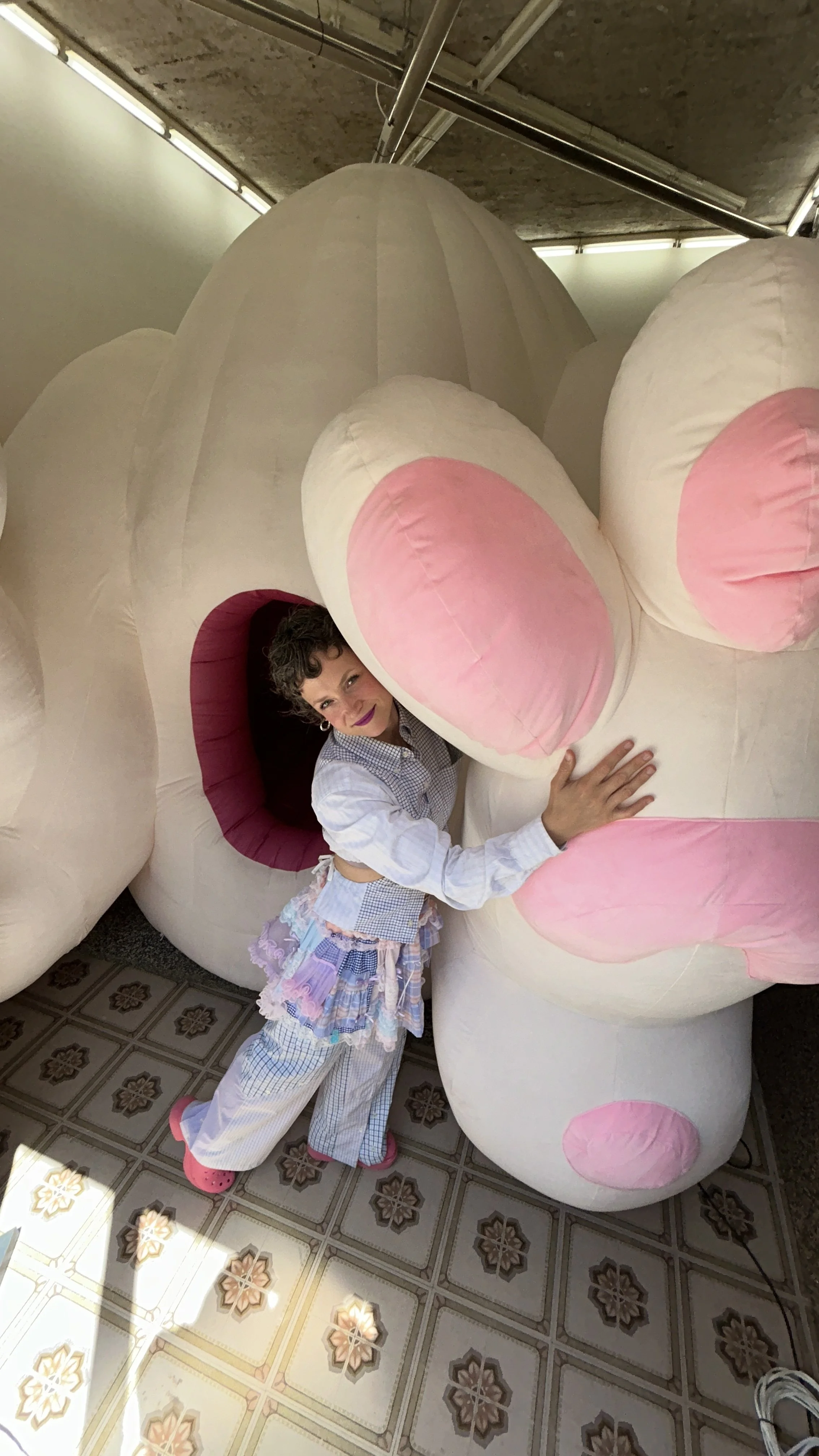 The ongoing project grew out Verkade’s profound experience of post-partum, like a never-ending psychedelic trip altering reality as we know it. Since 2023 the project has grown its so-called extrusions, in the shape of mixed media sculptures, an inflatable cinema, drawings and animations (and more to come).